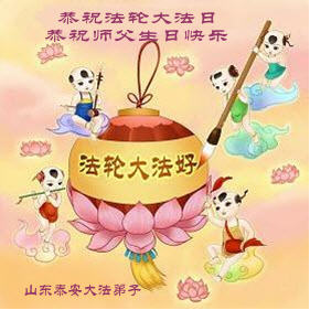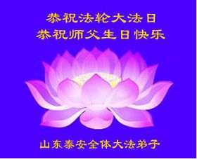 山东泰安全体大法弟子恭祝法轮大法日!恭祝师父生日快乐!