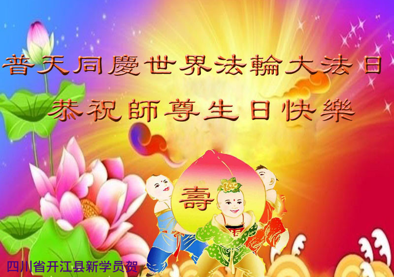 四川省达州市开江县新学员祝贺法轮大法洪传二十一周年!祝贺世界法轮大法日!