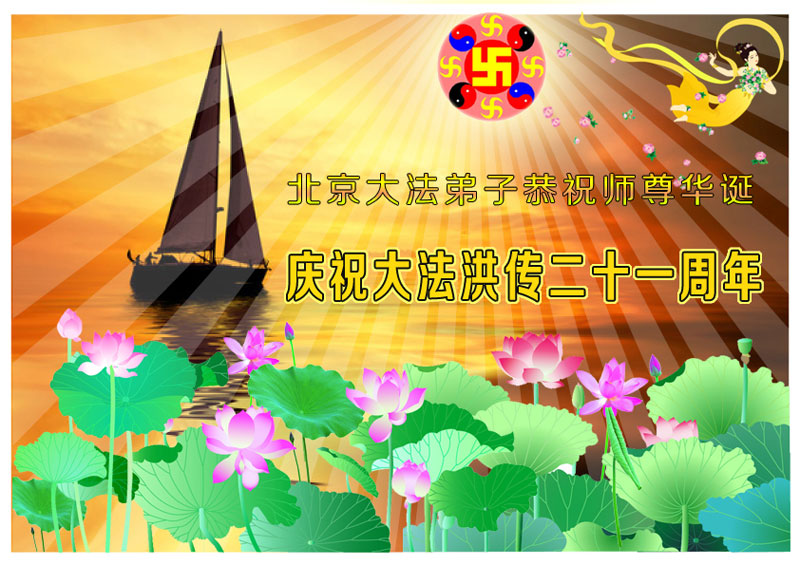 北京海淀区大法弟子恭祝师尊生日快乐!恭贺法轮大法洪传二十一周年!同祝世界法轮大法日! 北京东郊一老年弟子学法小组恭祝师尊生日快乐!