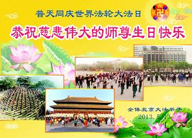 全体北京大法弟子普天同庆世界法轮大法日!恭祝慈悲伟大的师尊生日快乐!