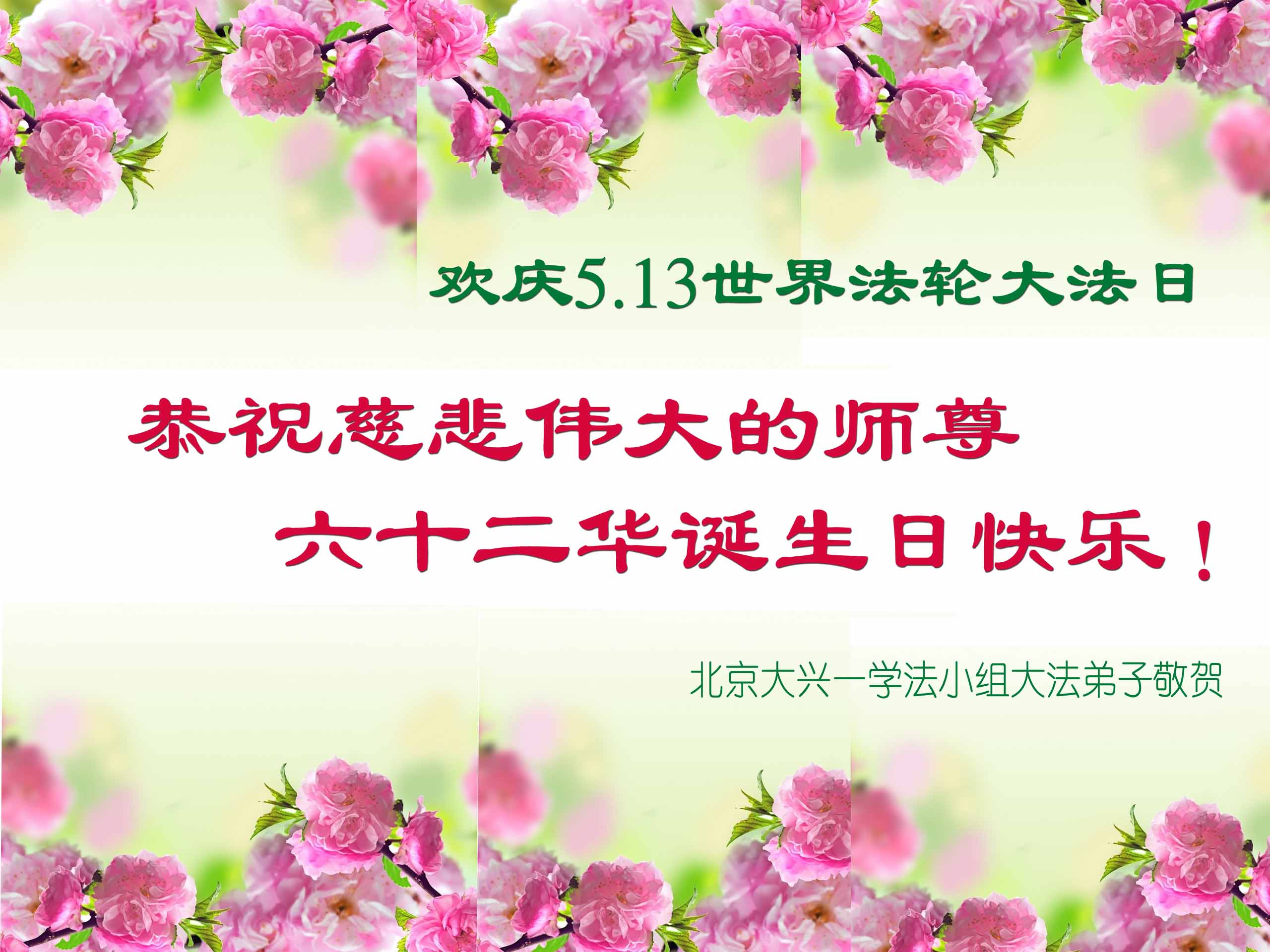 北京大兴一学法小组大法弟子恭祝师尊华诞暨世界法轮大法日!
