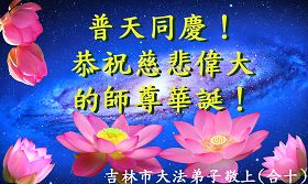 吉林市昌邑区一学法小组全体大法弟子恭贺师父华诞暨庆贺法轮大法日!