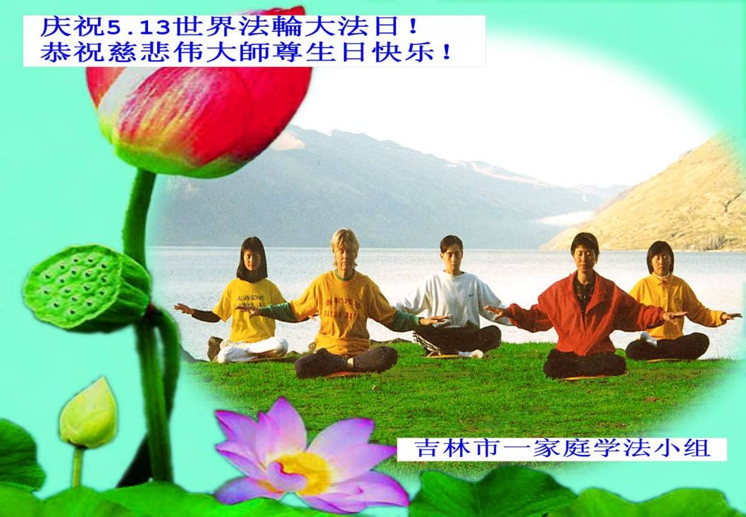 吉林市一家庭学法小组大法弟子恭祝慈悲伟大的师尊生日快乐!庆祝世界法轮大法日!