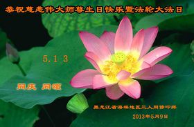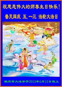 黑龙江省鹤岗家庭资料点大法弟子恭祝慈悲伟大的师尊生日快乐!普天同庆5.13世界法轮大法日!