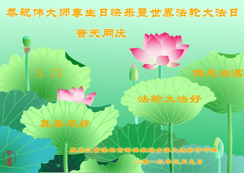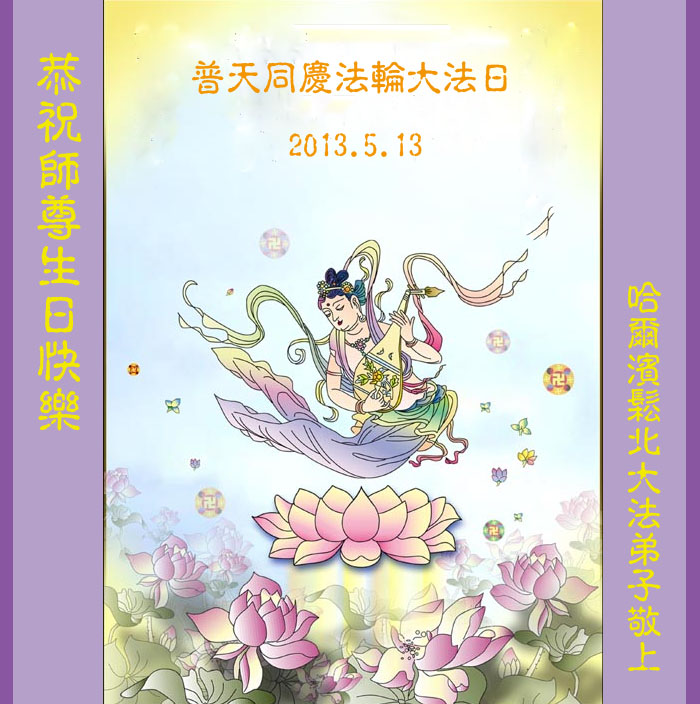 普天同庆法轮大法日! 哈尔滨松北大法弟子敬上! 大陆大法弟子庆祝世界法轮大法日!