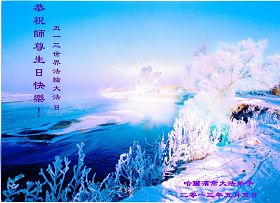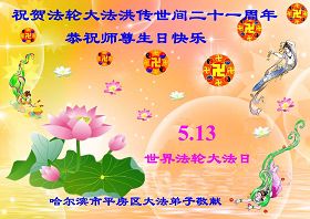 我们一定在今后的日子里,认真学法,向内找,实修自己,让师父少一些操劳,多一些欣慰,勇猛精進,圆满随师还。 北京海淀一大法学法小组全体弟子敬祝 黑龙江省哈尔滨全体大法弟子恭贺法轮大法日!