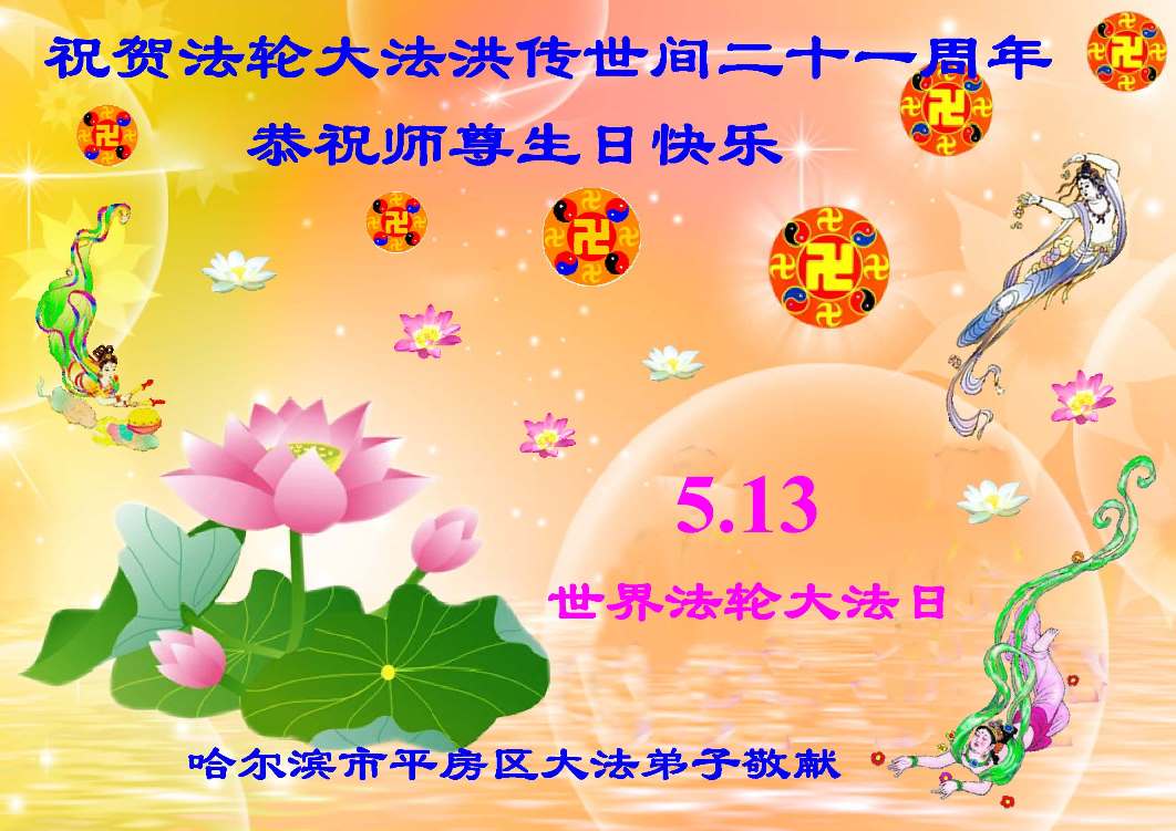 祝贺法轮大法洪传世间二十一周年!恭贺5.13法轮大法日! 黑龙江省佳木斯大法弟子恭祝慈悲伟大的师尊节日快乐!