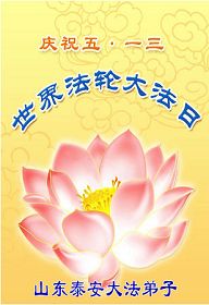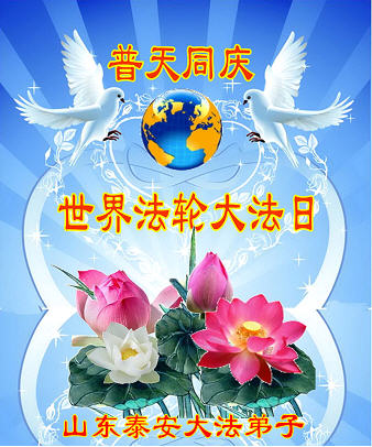 山东泰安大法弟子普天同庆世界法轮大法日!