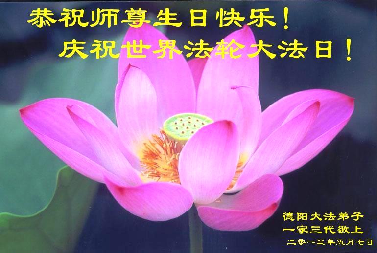 四川省德阳大法弟子一家三代人恭祝师尊生日快乐!庆祝世界法轮大法日!