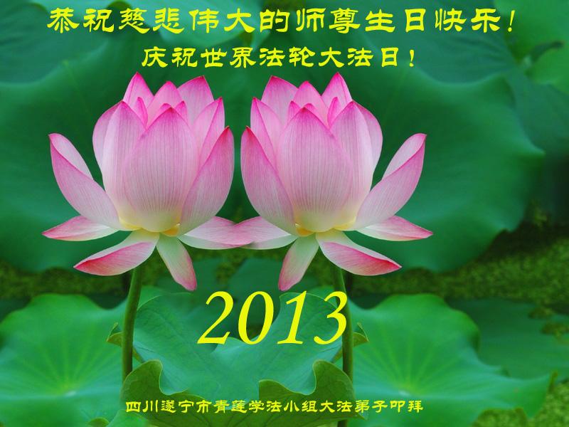四川遂宁市青莲学法小组大法弟子恭祝师尊华诞!普天同庆5.13法轮大法日!