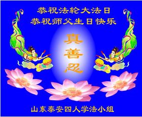 山东泰安四人学法小组大法弟子恭祝慈悲伟大的师尊生日快乐!