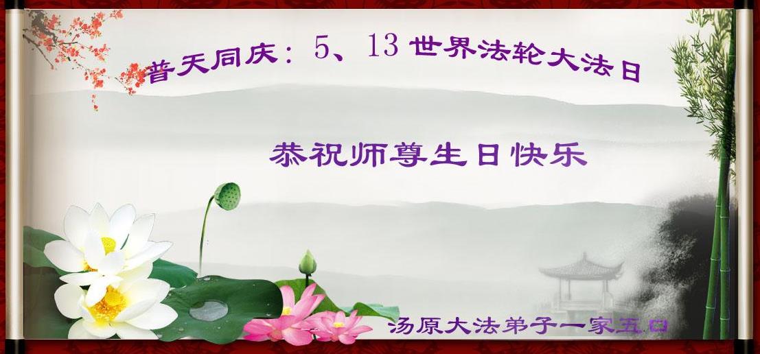 汤原大法弟子一家五口恭祝师尊生日快乐!
