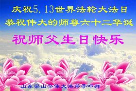山东东营大法弟子恭祝师尊生日快乐!同庆世界法轮大法日!