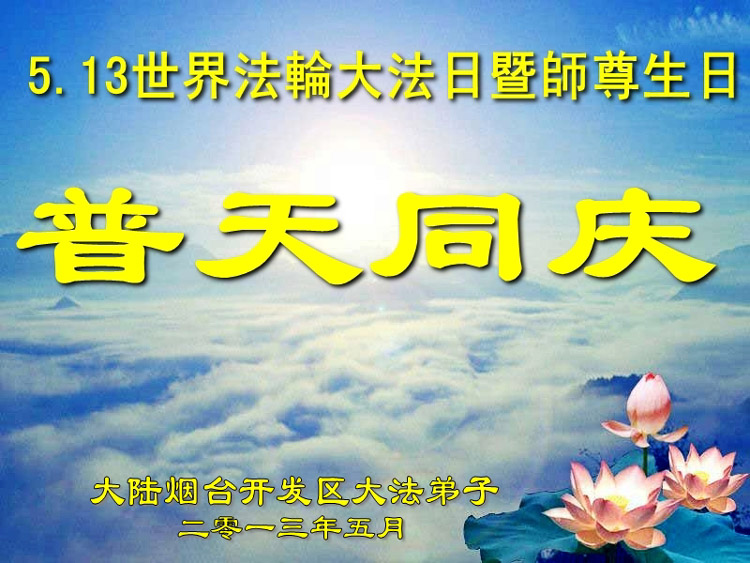 山东烟台开发区大法弟子庆祝5.13世界法轮大法日!恭祝慈悲伟大的师尊生日快乐!
