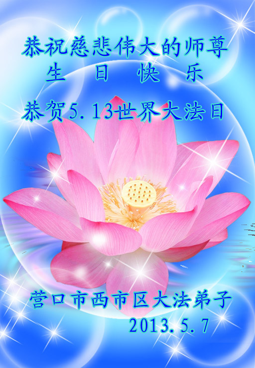 辽宁省营口市西市区大法弟子恭祝慈悲伟大的师尊生日快乐!