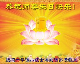 辽宁省抚顺一学法小组全体大法弟子恭祝师尊生日快乐!