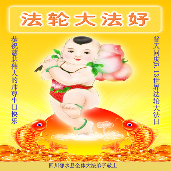 四川省广安市邻水县大法弟子恭祝师尊生日快乐!同庆法轮大法日!