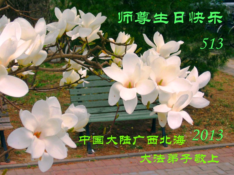 感谢恩师慈悲苦度,无时无刻呵护着弟子,不断将弟子扶正走好,弟子一定做好三件事,圆容师尊所要的。 湖南宁乡大法弟子 二零一三年五月十日 广西北海大法弟子祝师尊生日快乐!