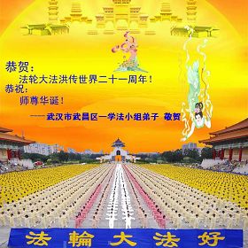 湖北省武汉大法弟子恭贺大法开传二十一周年!