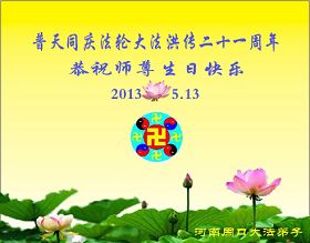 河南大法弟子恭祝师尊生日快乐!