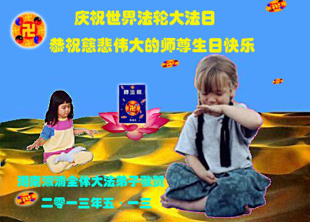 贺法轮大法洪传世界!愿师尊少一点操劳,愿同修们更努力,愿更多的世人得救。 2013年5月7日 湖南娄底大法弟子梁飞恭祝师尊生日快乐!
