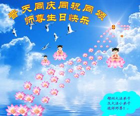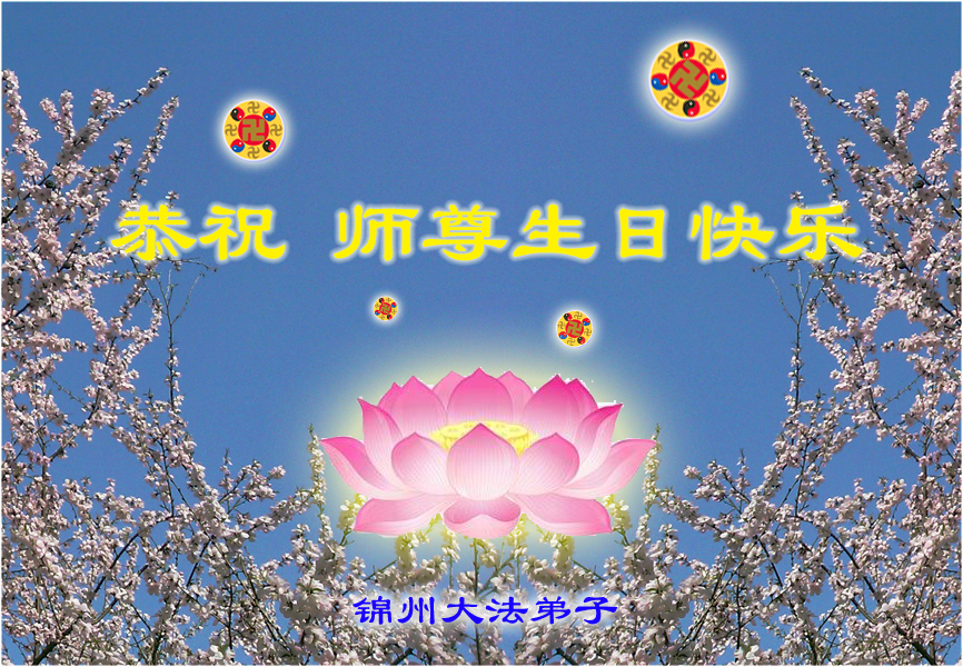 弟子们一定学好法,修好自己,整体配合好,做好三件事,多救人,跟师尊回家。 辽宁省锦州全体大法弟子恭祝师尊生日快乐!