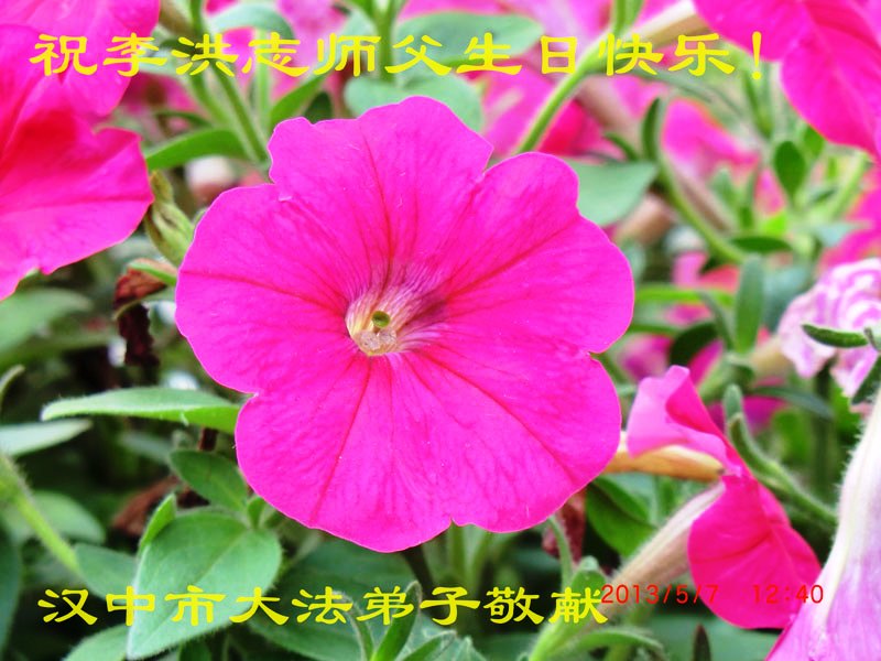 在这普天同庆的无比美好的日子里,让我们深深的道一声:师尊辛苦了!真诚感谢师尊的慈悲救度!在这洪大佛恩普照的日子里,千言万语化作我们诚心的颂念:法轮大法好!真善忍好! 陕西全体大法弟子 二零一三年五月七日 陕西宝鸡学法小组祝贺师父生日快乐!普天同庆世界法轮大法日!