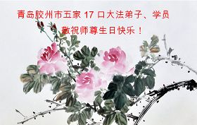 山东省青岛市胶州市五家17名大法弟子、学员敬祝师尊生日快乐!