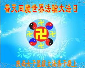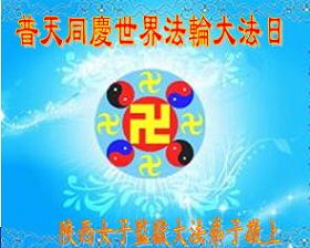 恭祝慈悲伟大的师尊生日快乐!普天同庆世界法轮大法日! 我们青岛大法弟子一定解体一切障碍,形成整体,做好师父让做的三件事! 青岛大法弟子(包括被邪恶非法关押迫害的大法弟子)敬上 二零一三年五月七日 陕西省女子监狱被迫害的全体大法弟子恭庆5.13世界法轮大法日!