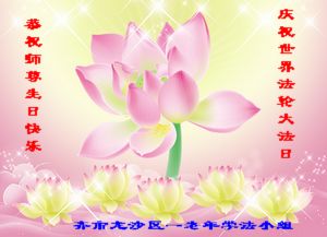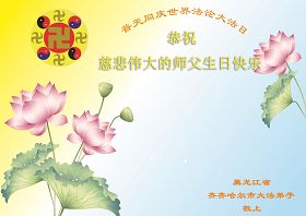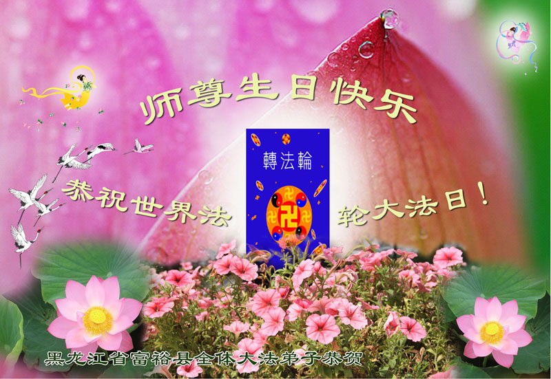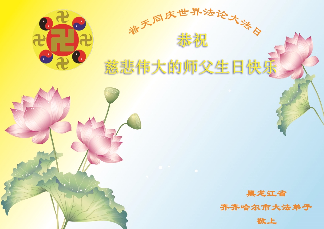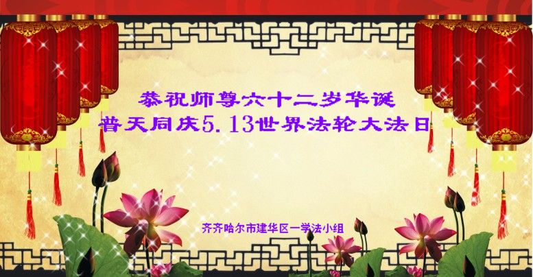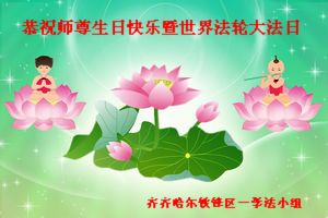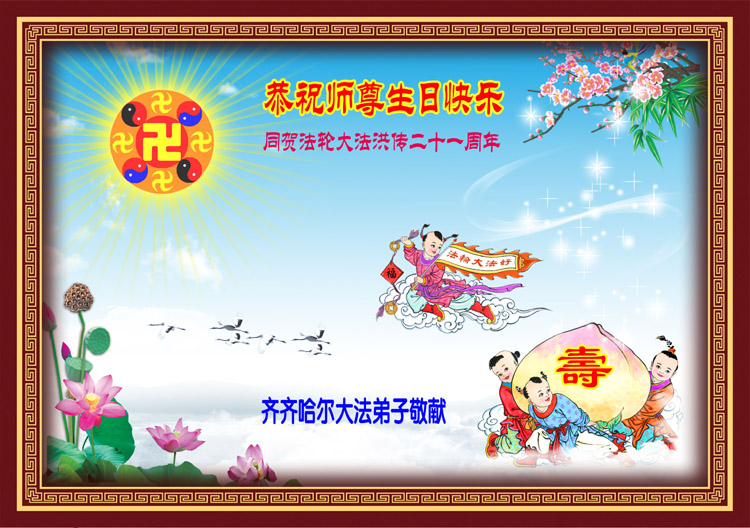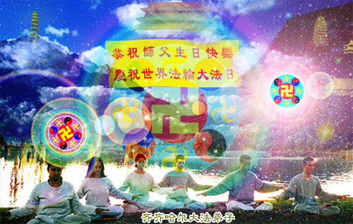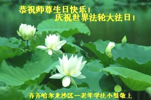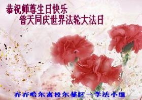 黑龙江齐齐哈尔大法弟子恭祝慈悲伟大师父生日快乐!恭贺“世界法轮大法日”