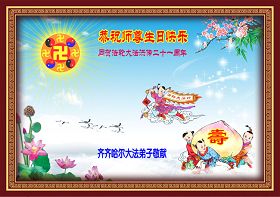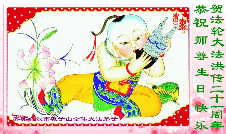 黑龙江省齐齐哈尔市碾子山区全体大法弟子恭祝慈悲伟大的师尊生日快乐!祝贺法轮大法洪传二十一周年!