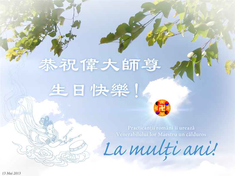 罗马尼亚全体大法弟子恭祝慈悲伟大的师尊生日快乐!恭贺法轮大法洪传世界二十一周年!普天同庆同贺“法轮大法日”!