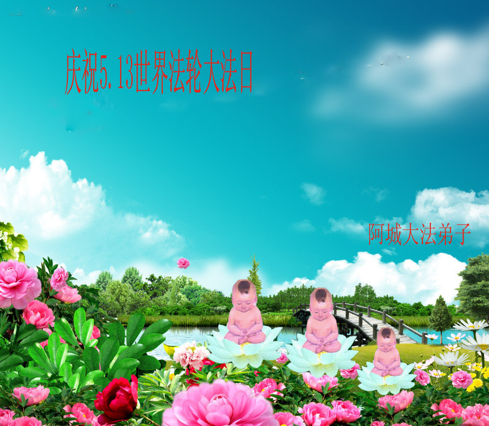 欢庆五一三 世界大法日 法轮天地旋 佛光耀宇间 黑龙江省哈尔滨市阿城市大法弟子恭祝师尊生日快乐!庆祝法轮大法日!