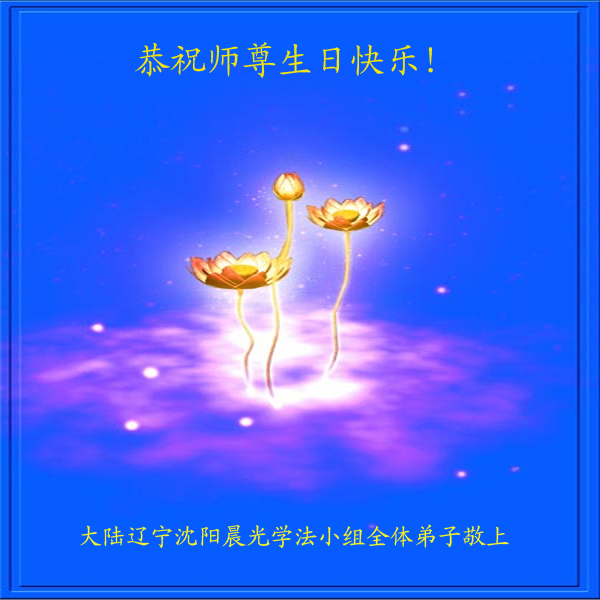 大陆辽宁省沈阳市学法小组全体弟子恭祝师尊生日快乐!
