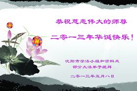 辽宁省沈阳学法小组和资料点部份大法弟子恭祝慈悲伟大的师尊二零一三年华诞快乐!