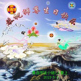 在正法修炼的最后路上,我们向师父保证:一定认真静下心来学好法,修好自己,做好三件事,做一个达到标准的大法弟子,纯纯净净的跟师父回归天国家园!师父辛苦了! 青岛学法小组7人敬上! 2013-5-2 山东省青岛学法小组全体大法弟子恭祝师尊生日快乐!
