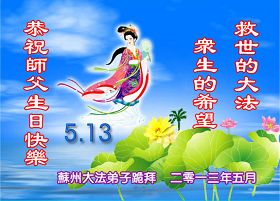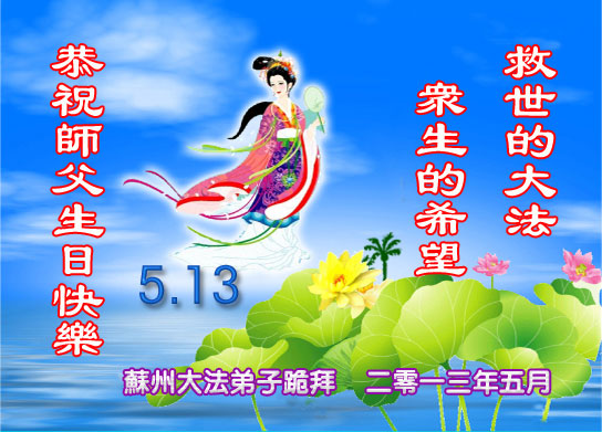 江苏南通全体大法弟子恭祝慈悲伟大的师尊生日快乐!普天同庆5.13法轮大法日! 江苏六合大法弟子恭祝世界法轮大法日!