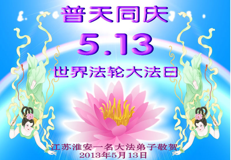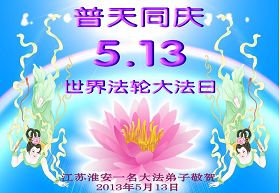 江苏淮安一名大法弟子恭祝师尊生日快乐!贺 5.13世界法轮大法日!庆祝大法洪传二十一周年!叩谢师父慈悲苦度!