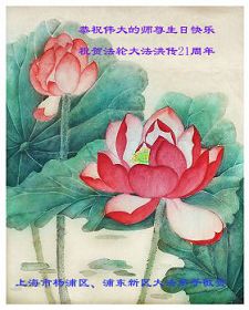 【明慧网二零一三年五月十三日】 上海杨浦区、浦东新区大法弟子恭祝伟大的师尊生日快乐!