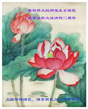 弟子想念师尊!请师尊放心,我们大法弟子一定做好三件事。我们全体弟子感谢师尊苦度之恩!合十 上海大法弟子恭祝师尊生日快乐!普天同庆法轮大法洪传二十一周年!