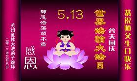 弟子一定坚定实修,多救人,和师父回家。 江苏苏州全体大法弟子恭贺法轮大法日!