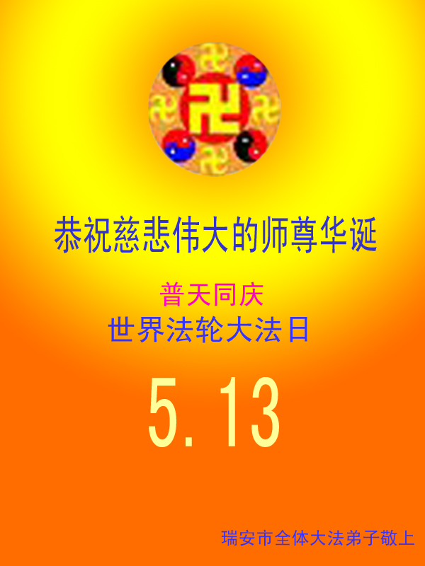 浙江省温州市瑞安市全体大法弟子恭祝师尊生日快乐暨世界法轮大法日!