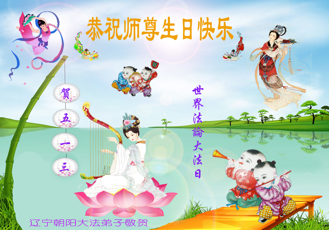 辽宁省朝阳市全体农村大法弟子恭祝慈悲伟大的师尊生日快乐!传法二十一周年!暨普天同庆同颂五一三世界法轮大法日!