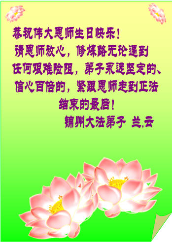 辽宁锦州大法弟子恭祝师父生日快乐!