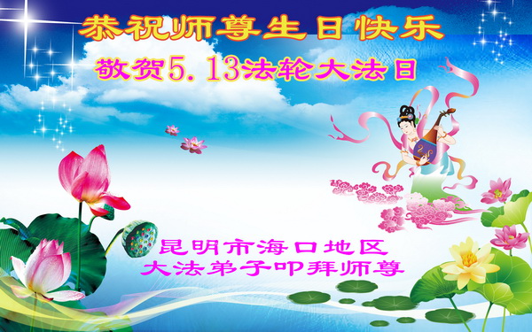 昆明市海南省海口地区大法弟子恭祝伟大师尊生日快乐!