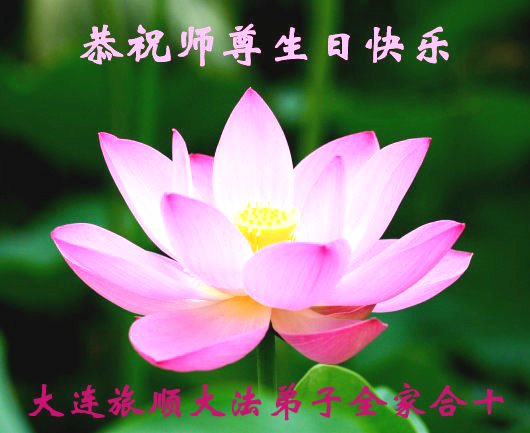 辽宁大连旅顺大法弟子全家恭祝师尊生日快乐!