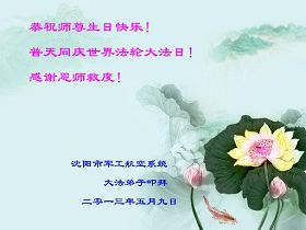 辽宁省沈阳军工航空系统大法弟子恭祝师尊生日快乐!普天同庆世界法轮大法日!