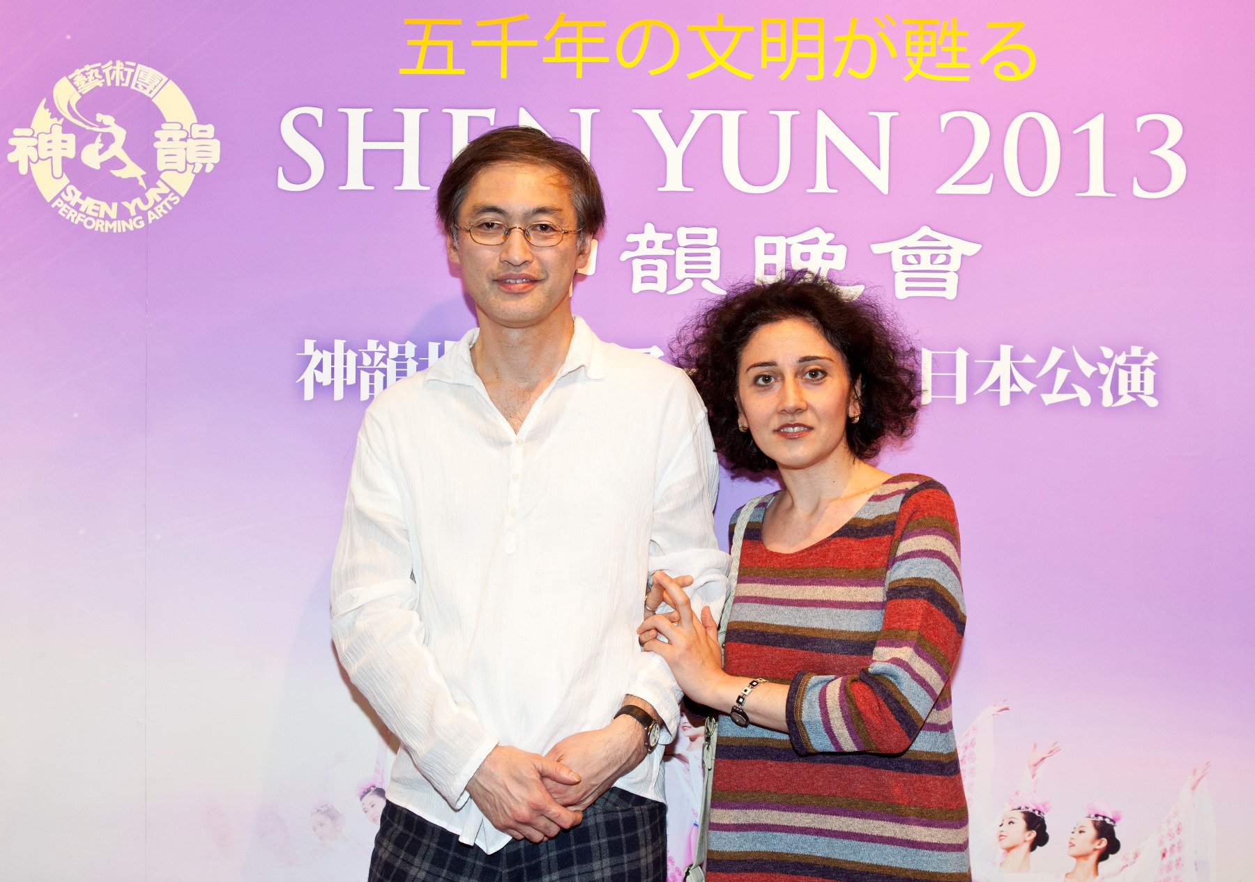 Safarova Gulnara来自阿塞拜疆,是专攻古典钢琴的专业钢琴家。她表示:“演出阵容强大,服装很华美,演出很精彩。”“同是亚洲人,都信仰神佛,中国传统音乐和我的祖国有相似的地方,但音色又不同。今天第一次现场感受中国音乐。”  来自阿塞拜疆的古典钢琴演奏家Safarova Gulnara和先生国家公务员东大辅观看了神韵演出。 |