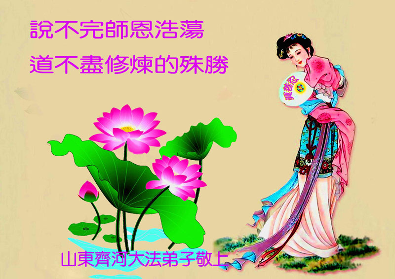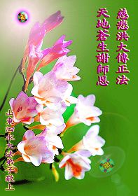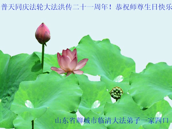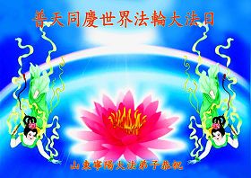感恩师尊慈悲苦度弟子!面对这博大精深的宇宙大法,任何一个真正有理性的人都无法拒绝,因为他给了每一个众生选择未来的机会。弟子无法报答师尊的慈悲救度,只有按照师尊的要求去做,真正做到无条件的圆容师尊所要的,在大法中精進实修,做好三件事,救度更多的世人,跟师尊圆满的回家。感恩师尊!跪拜师尊!合十! 山东临邑大法弟子恭祝师尊生日快乐!恭贺世界法轮大法日!