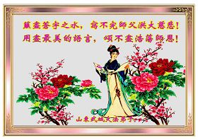 山东高唐大法弟子恭祝师尊生日快乐!恭贺世界法轮大法日!
